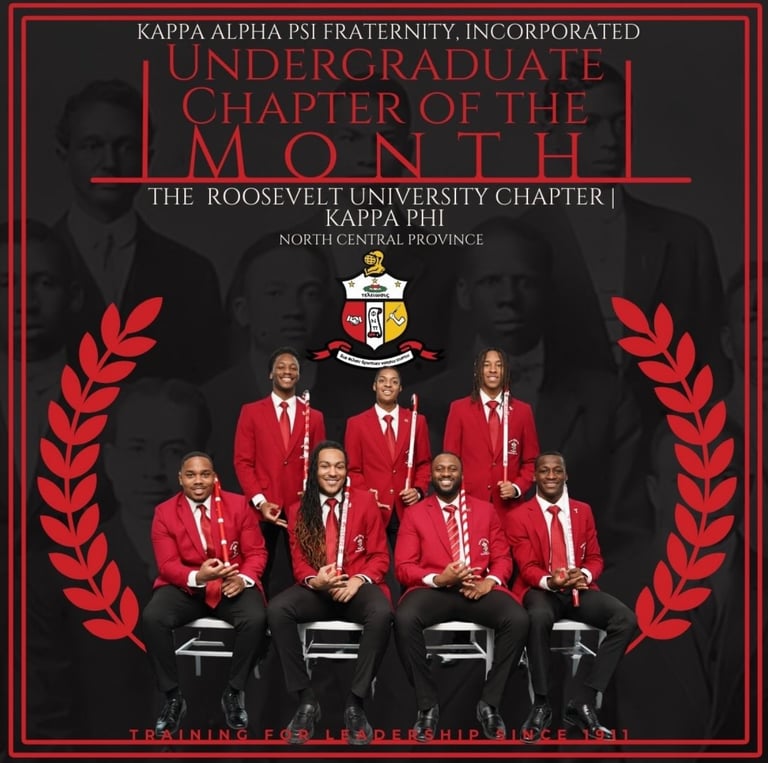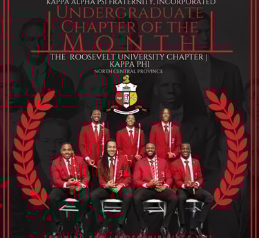 The Kappa Phi Chapter serves as the city chapter of Kappa Alpha Psi Fraternity, Inc. within Chicago, uniting undergraduate brothers across multiple institutions into one cohesive and impactful body. Representing students from Roosevelt University, Columbia College Chicago, Illinois Institute of Technology, East-West University, Elmhurst University, Aurora University, the University of St. Francis, and Concordia University Chicago, Kappa Phi creates a centralized presence that strengthens brotherhood, leadership, and service throughout the city.